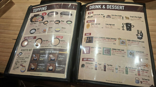 濃厚つけ麺+唐揚セット350THB、のり20THB、チーズリゾットセット60THB