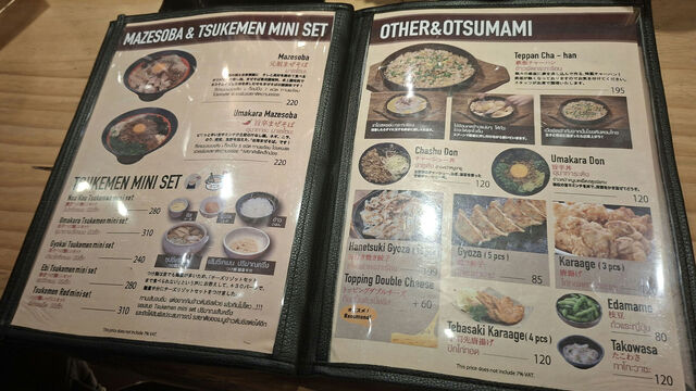 Umakara Tsukemen Special 380THB, Tebasaki Karaage 120THB (VAT, サ料別)