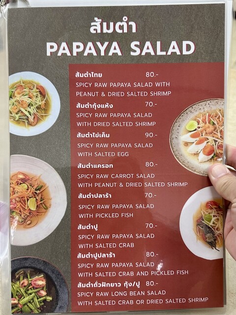 外観は雑居ビル1階!入口からオープンな大衆食堂といった感じな雰囲気!1階はエアコンが無いので、2階席に案内されることが多い〜スタッフにオススメ料理を尋ねると「ガイヤーン」と「ソムタム」など、お店のイチオシは外さない勧め方に促され「ガイヤーン」「ソムタム」「トムセープガイヨードマーカームオン」「ガイノンサポークヤーン」「カオニャオ」などを注文しました。