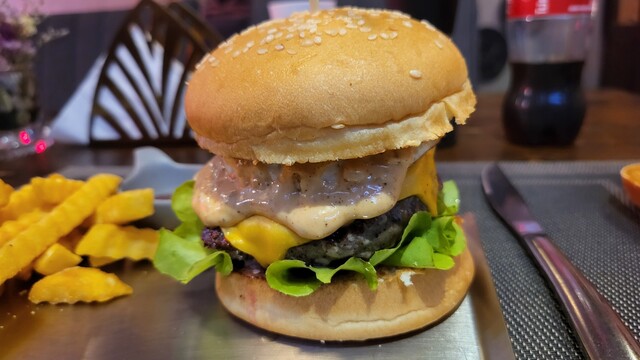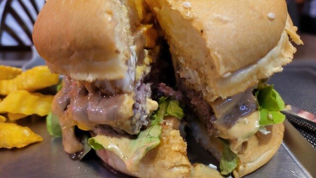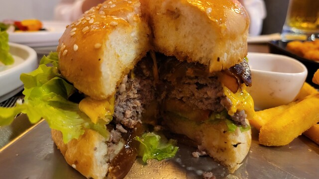 誕生日の晩餐にアメリカンバーガー、うまい!