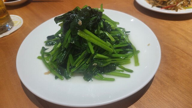 パラパラ炒飯も美味いが空芯菜炒めを頼んだらほうれん草だった。