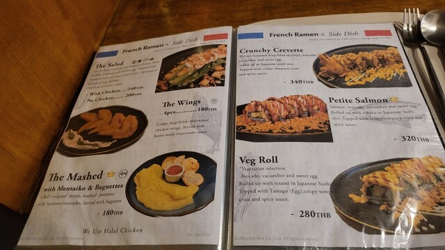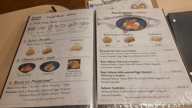 Salmon Tsukemen 420THB, Rice & Cheese 20THB(VAT, サ料別)