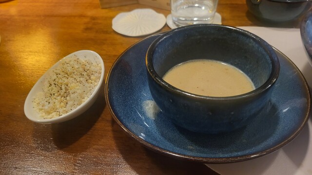 そして麺は前回はらーめんで食べた椎茸スープを今回はつけ麺で発注。