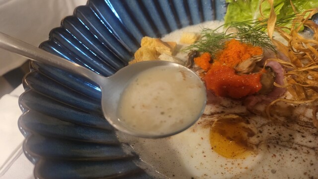 牡蠣の濃厚なスープが素晴らしい。