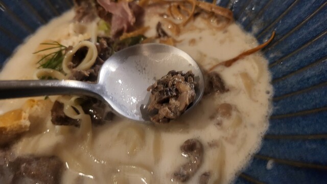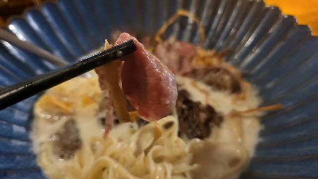 白濁のスープは牛の旨味が出て文字通りクリーミーでうまい。
