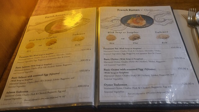 Oyster Tsukemen 420THB, Rice & Cheese 20THB(VAT, サ料別)