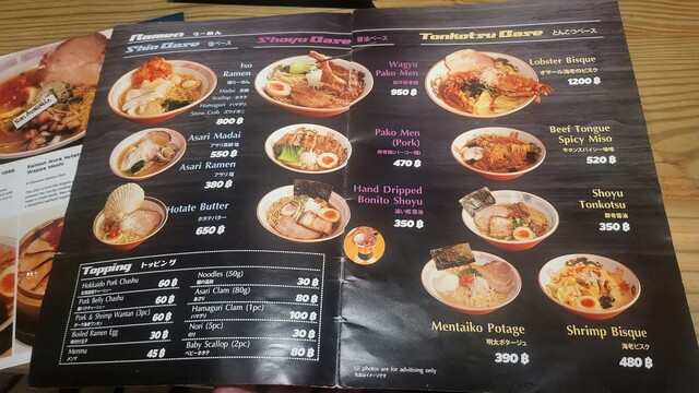 豚骨醤油350THB, のり30THB, 鉄火丼650THB(VAT, サ料, 30%OFF別)