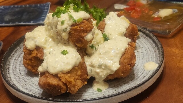 チキン南蛮、鮪、オキアジ刺身、鯵マリネ