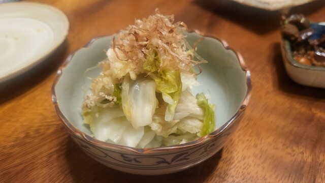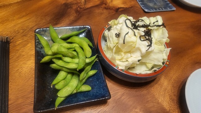 だし巻き玉子、白菜漬物、枝豆、キャベツ塩昆布和え、前菜盛合せと食べ過ぎたので〆らーはハーフ。