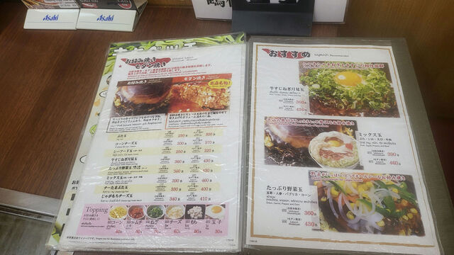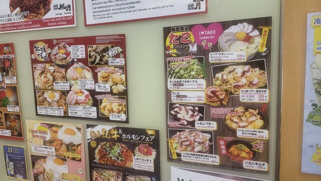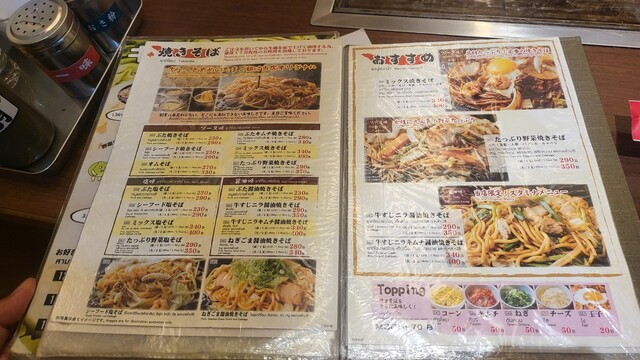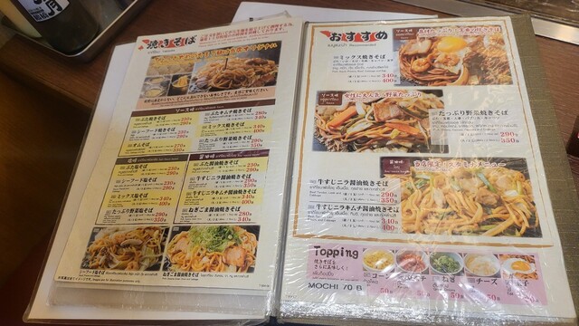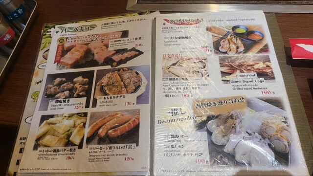 かきぶた玉360THB, たっぷり野菜焼きそばM315THB, たこ塩バター焼きそば335THB(VAT, サ料別)