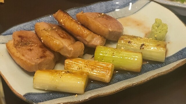 おすすめの厚削り節葱和え、石焼きそば味噌、鴨葱焼き、板ワサ等