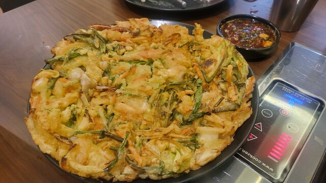 チヂミは半分食べたが残りはテイクアウェイ。