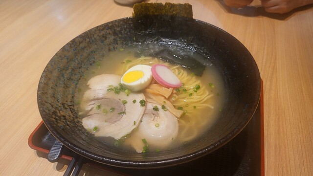 らーめんは塩、醤油、味噌、豚骨、辛いカルビの中から塩をセレクト。