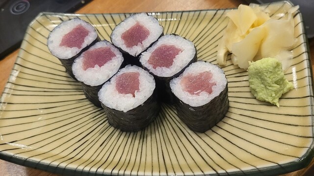 アテはチクキュー、鶏唐揚げ、白菜漬物、鉄火巻き。