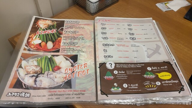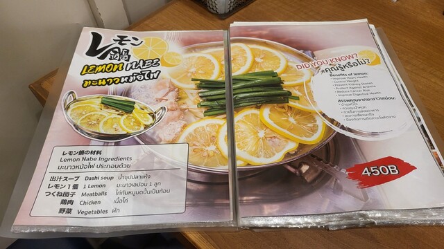 白いもつ鍋R 800THB, らーめん65THB(VAT, サ料別)