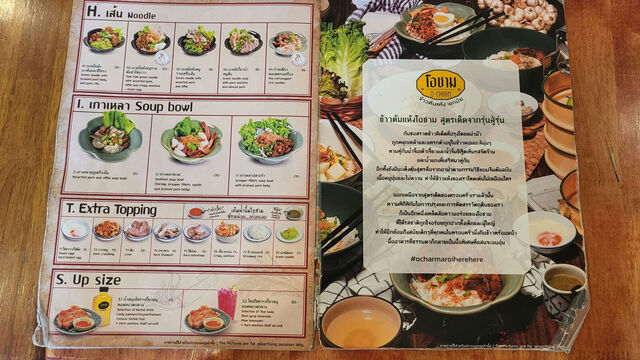 Dry noodles with mixed pork, Tom Yum with lava egg129THB, Dry rice with pork shabu with lava 149THB, Crispy Pork 129THB