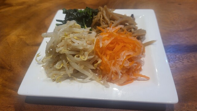 チャーシュー三枚にネギ、モヤシ。冷麺は激辛の5まであるので辛口の3発注。