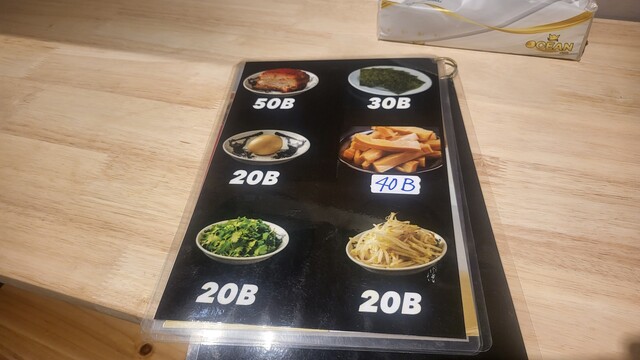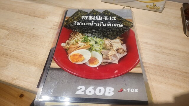 特製油そば260THB, チャーシュー丼90THB