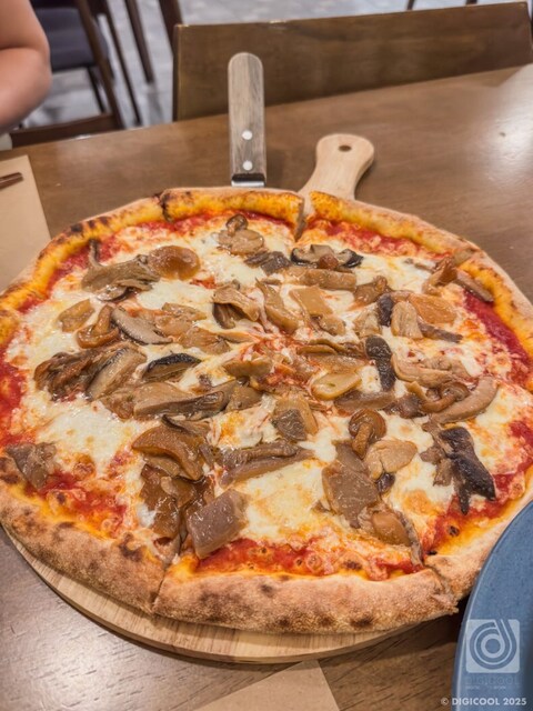 「FunghiPizza(360฿)」はフンギ(イタリア語でキノコのこと)をたっぷりと乗せたトマトソースのピッツァで、マリネされたシメジやポルチーニ茸とモッツアレラチーズがめちゃくちゃ合います。シンプルな味付けのベジ系ピッツァなので軽いかな〜と思っていたけど生地が結構しっかりしていてお腹にドシッときた!