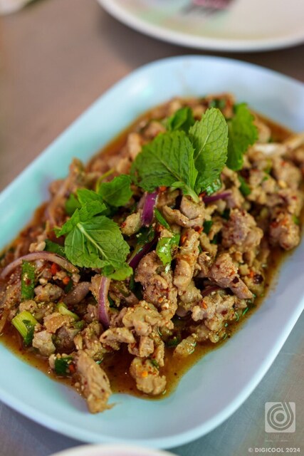 「LapPedNaiNom(ร้านลาบเป็ดนายหนอม)」という食堂で他のタイ人の友達に聞いても知っていたから結構有名なのかも。