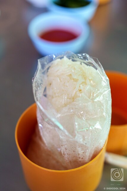 「ข้าวเหนียว(カオニャオ)」はもち米。こちらではいわゆるタイ米のジャスミンライスともち米をよく食べます。もち米はひと口大にちぎって指でこねこねして食べるのが一般的。色んな料理のタレを付けたりすると美味しいですよ。