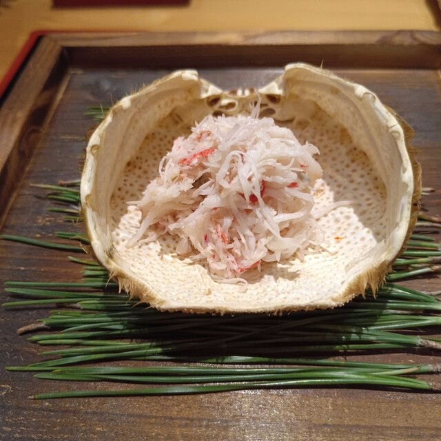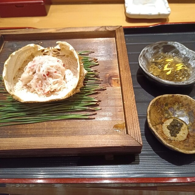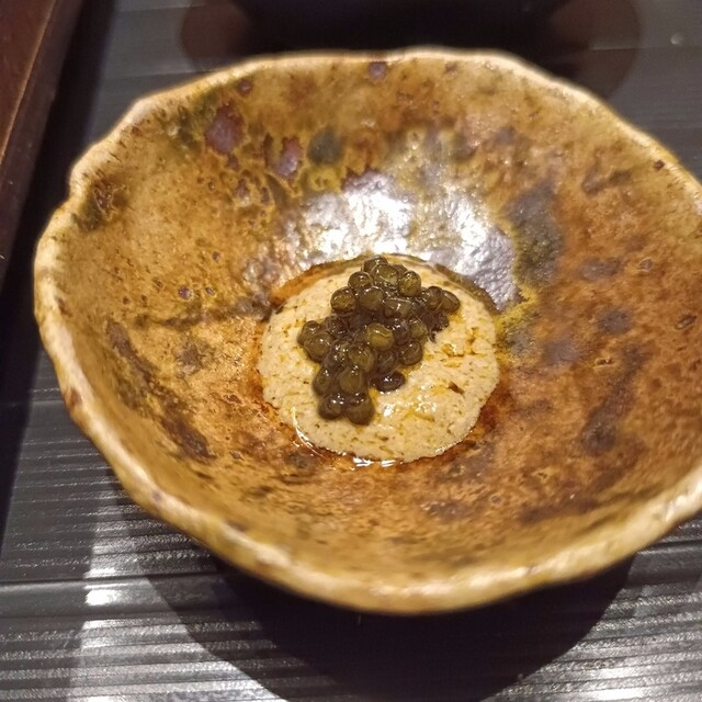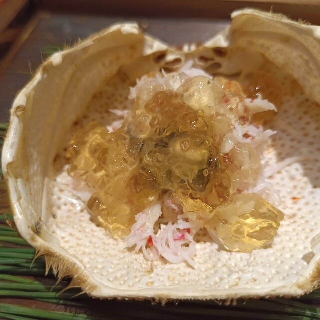 添えられるのは蟹味噌キャビアと土佐酢のジュレ。