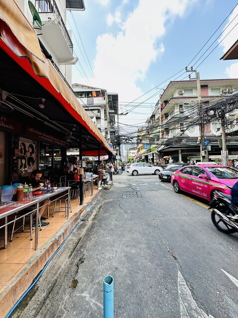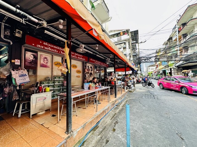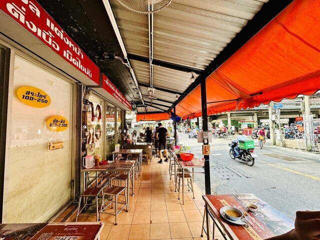 外観は、ラチャダーピセーク通りから中国大使館脇の路地を進んだ十字路に位置しており、バイクや車にタクシーが激しく行き交う交通量が半端ない!バンコクの雑踏を眺めながらの食事が楽しめるお店だと思います!店内はオープンエアで、道路に面したテーブルに奥のテーブル席とレイアウトはL字型になっています。