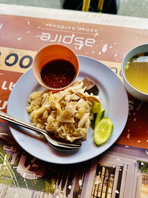 スープは、鶏出汁スープかと思いきやコンソメスープで味が濃く、薄めのカオマンガイの味わいをリカバリーしてくれるようで美味しかった!ドリンク類などない為、真向かいの「セブンイレブン」で好みのドリンクを買ってから席に着くのがおすすめです。