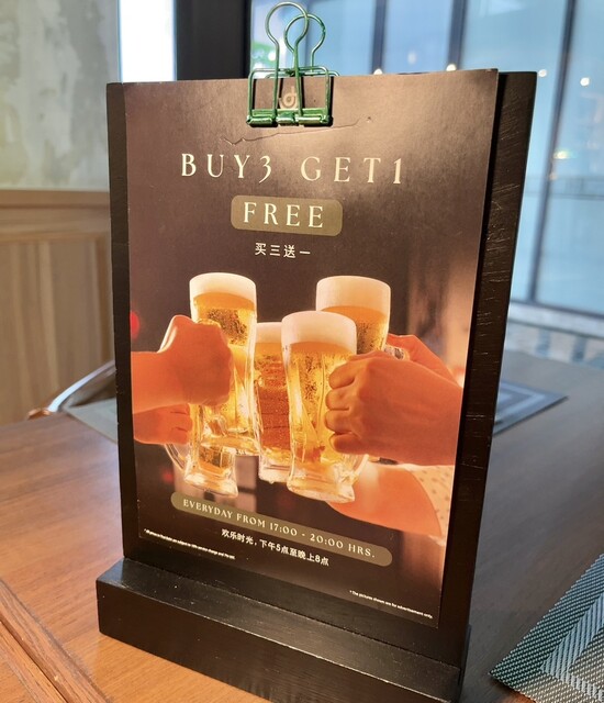 こちらはシンハービール4杯が1杯無料になるシステム。