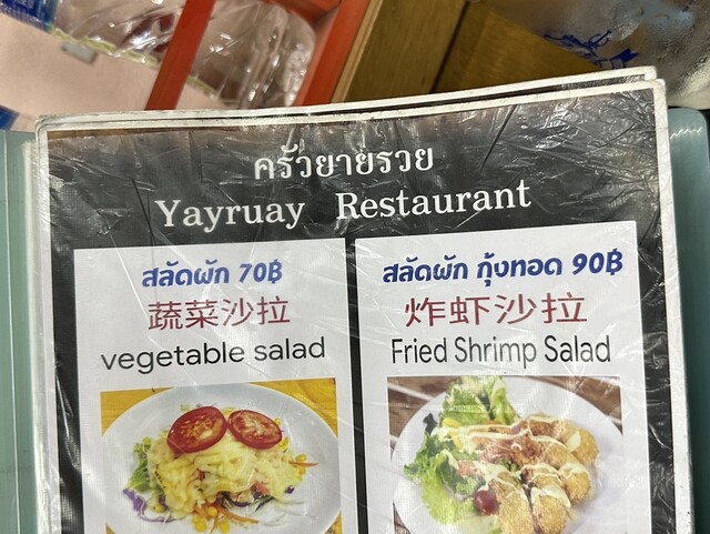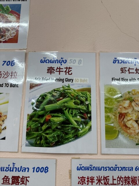 直訳すると酔っ払い炒め。酒に酔ったコックが適当に作ったらあり得ないくらい辛い食べ物ができてしまったと言うネーミングらしい(諸説あり)。味付けはナンプラーとオイスターソース。