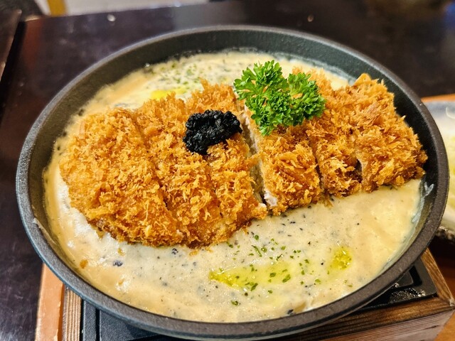 先ずは、トンカツ一切れを、黒トリュフクリームソースにたっぷりと浸しパクリ!美味しい♡期待以上のクオリティに満足だわ〜海外チェーン店での食事は、日本食を懐かしむといったプラス要因も働いて納得いくとんかつランチでした。