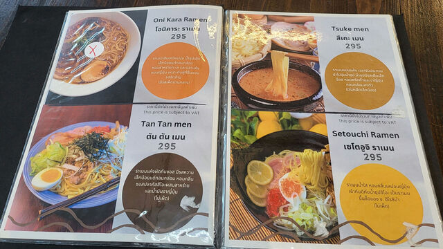Setouchi Ramen 295THB, Sparkring Ume95THB (VAT, サ料別)