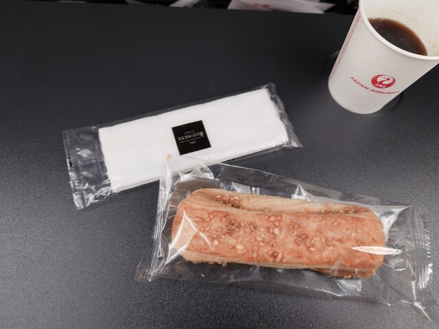 JAL飛行機で ハンバーグ◯ うどんの入った茶碗蒸し△