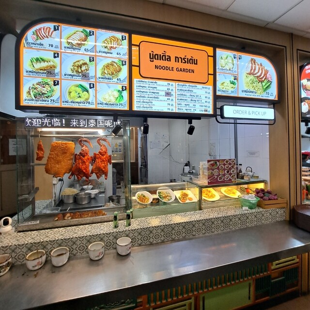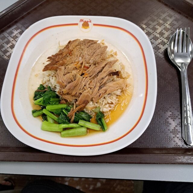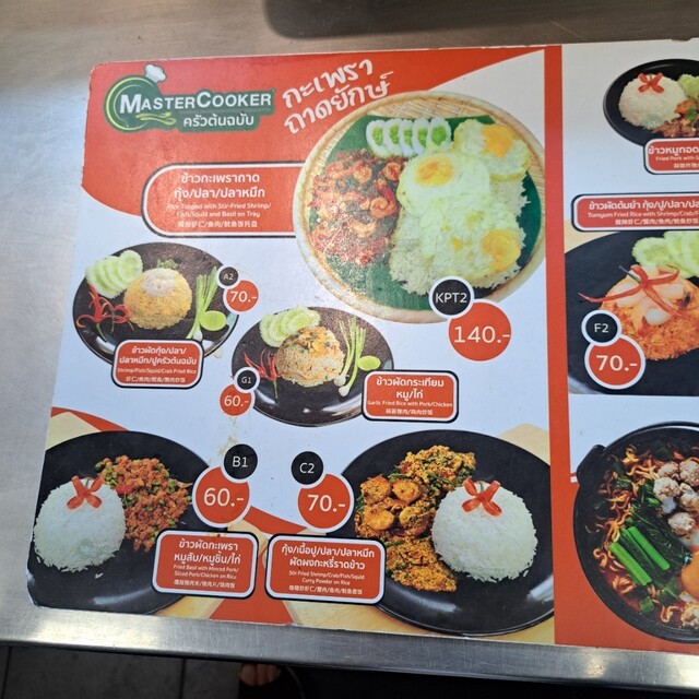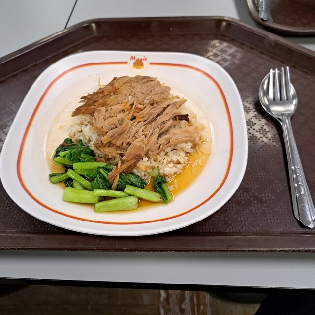 ラーメン専門店やフルーツ専門店、寿司専門店もある中、私は「MASTER COOKER」さんへ、相方はそのお隣りの「CHULA PORK LEG」さんへ…。