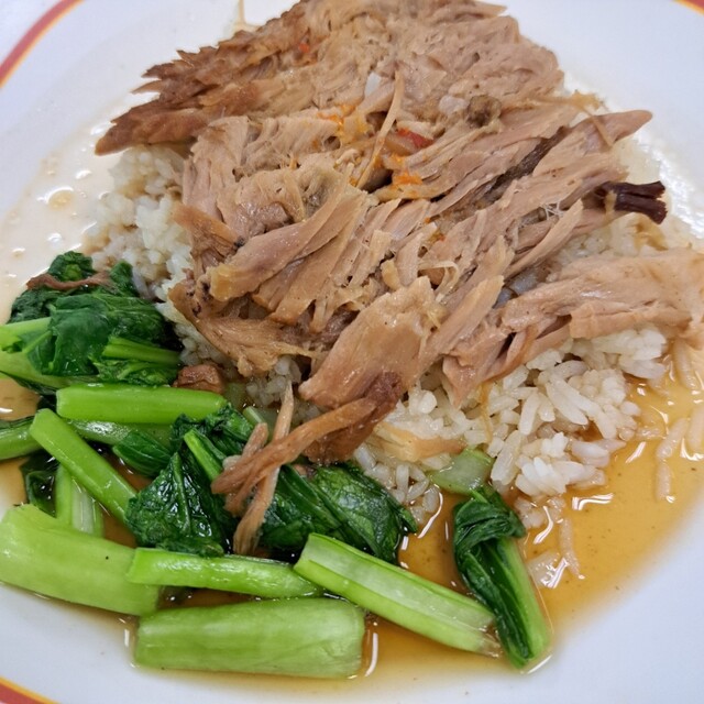 少し分けてもらいましたが、ご飯の上には豚足を煮込んでほぐした肉が載ってます(^_^)。