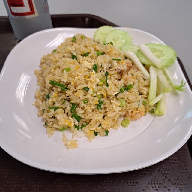 「カオパッド」は炒飯ですが、プルプルの海老の身とカニの身も入っており、どちらかと言うとしっとりした硬さのタイ米でした。