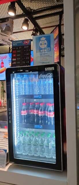 タイ王国・首都バンコク・スワンナプーム国際空港。空港内の出国審査後にある、アイスクリームやソフトクリームのチェーン店です。アメリカ発の大規模チェーン。因みに、空港名の「スワンナプーム」とはサンスクリット語で「黄金の土地」と言う意味で、空港内には黄金の「乳海攪拌」オブジェ等があり、全体的にとても豪華な造りです φ(..)