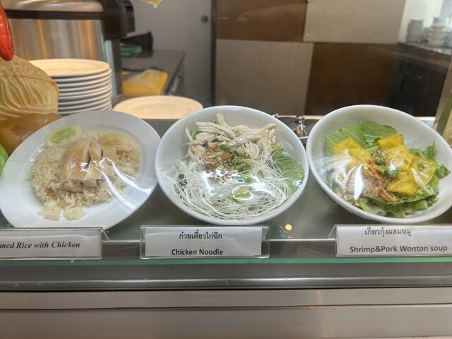 なのでラウンジに入れるだけで嬉しいのに、ここは食べ物も多くカオマンガイやワンタンスープやフォーなどもあった♡