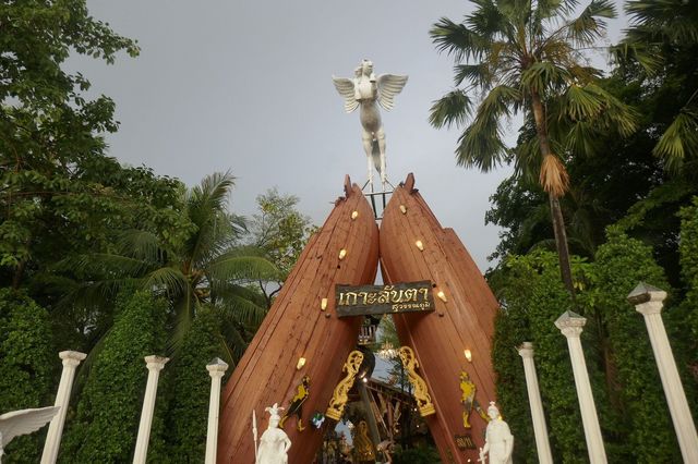 「Koh-Lan-TaRestaurant&KaraokeatSuvarnabhumi」は、リゾートレストランな雰囲気で、入口や駐車場を歩いている時点でも観光地に行ったかのような気分に浸れます。と、言うことで大きなゲートをくぐってレストラン内へ。