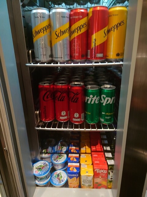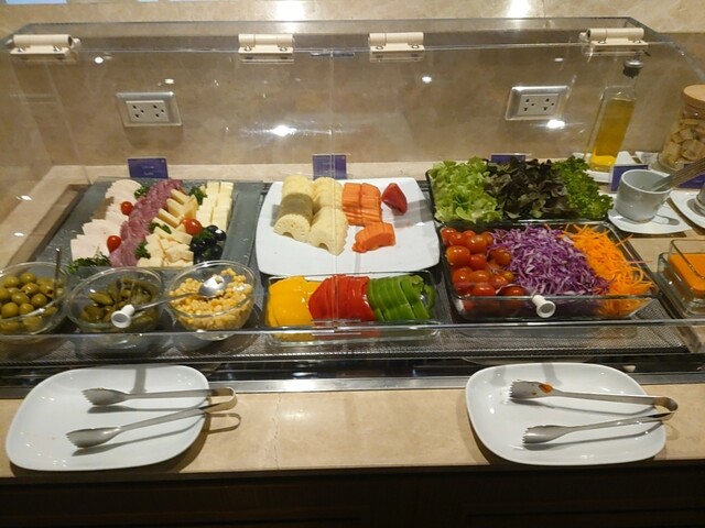 気になるフードメニューは規模はHot meal, snacks and refreshment buffet barということで、小さいけど一通りあって嬉しい。
