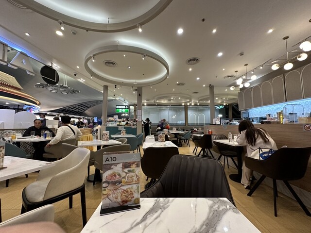 ハイブランド免税店を過ぎて、おみやげショップも終わったら、座ってひと休み。