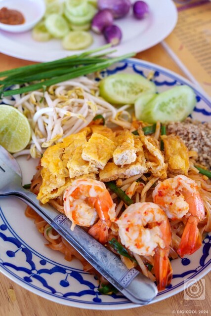 ここの「ผัดไทย(パッタイ)」はすこしケチャップ味がして面白い。パスタっぽいけど後味はナンプラーの香るタイ風味付け。そんな感じ。