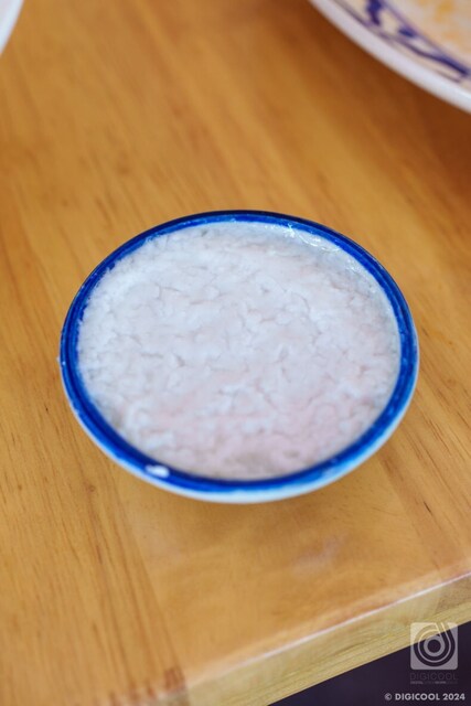 テーブルに食後のデザートがあって、タイの人たちは辛い食事の後にこの「ขนมถ้วย(カノムトゥアイ)」というココナッツミルクプリンを食べるんだそうです。食べてみたらほんのり塩味で、そこの方に緑豆の餡が入っていて美味しかった〜。