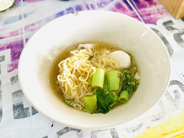メニューは豊富で、ボートヌードルはもちろん、つくねの煮物や豚皮など、様々なサイドメニューも楽しめます!ボートヌードルは、スパイシーな風味とカリカリの豚の皮が特徴で、甘くて油っぽいスナックがその辛さを和らげてくれます。