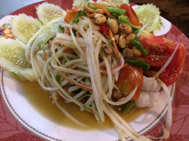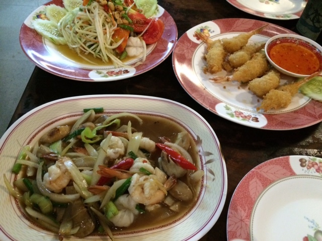 まずは日本でもよく食べる、海老のすり身揚げや空芯菜炒め、ソムタムを注文。