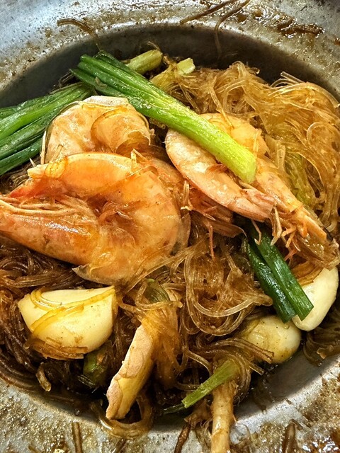 クン・オップ・ウンセンには大ぶりの海老がたっぷり入り、ニンニクが生姜もゴロゴロ。薬膳にも使われるコリアンダールーツも入っていて、油分も少なくとても健康的だ。