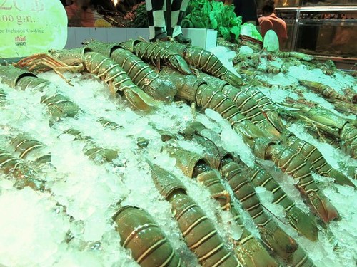 入り口には ロブスターやカニやエビがディスプレイされてます(^^)