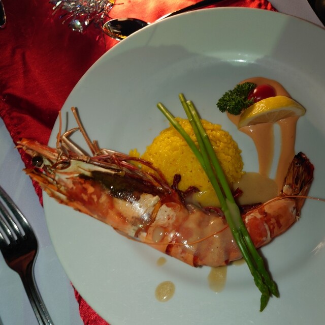 最初の晩ごはん。トムヤムクン旨い〜。