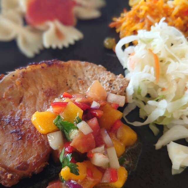 砂糖と塩とチリ?を混ぜたものをかけてみました。フルーツにトッピング。スイカに塩のイメージ。