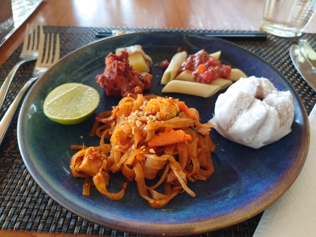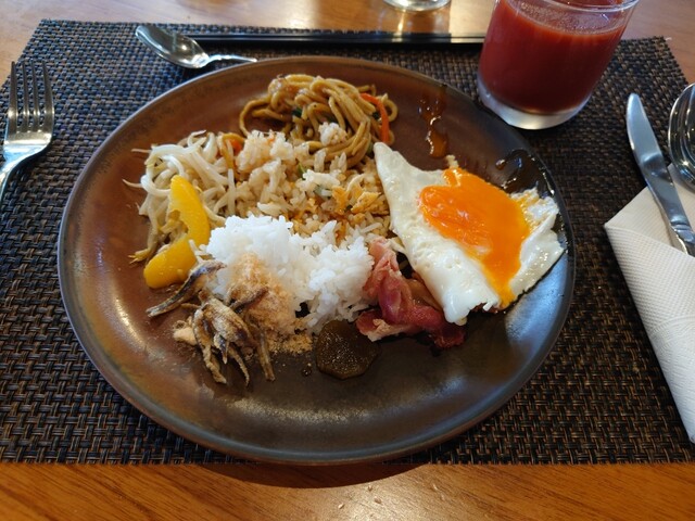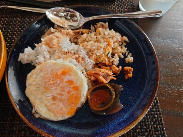 レストラン入口の1番近いあたりに、タイの料理のゾーンがあります。このあたりのご飯をメインに混ぜる用のごまめみたいなヤツとか、魚の身をほぐしたふりかけ的なヤツとかを乗っけて、マレーシアの朝ごはんて、こん...